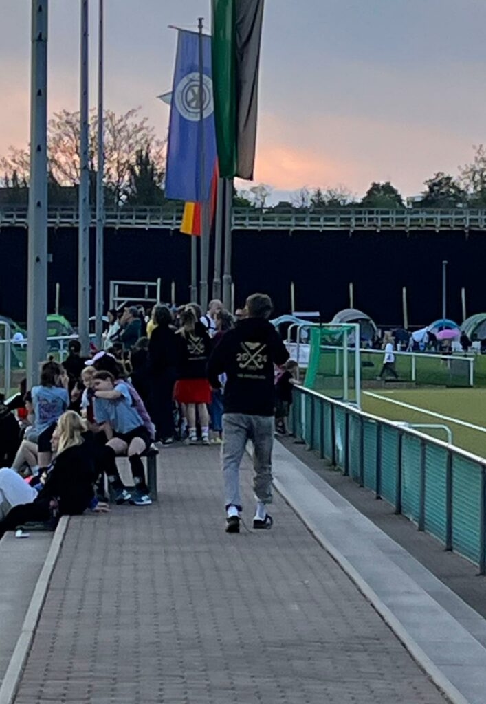 Ein besonderes Highlight in diesem Jahr war das Legendenspiel in dem die WJ18 des VFL Bad Kreuznach, Teilnehmerinnen bei der Endrunde der Deutschen Meisterschaft, gegen eine Turnierauswahl gespielt hat bei der auch einige Mädels aus der U16 und U18 unterstützt haben und die von allen anderen Teilnehmern von der Tribüne frenetisch angefeuert wurden. Und als unsere Sanna aus der WU18 den Ehrentreffer für die Turnierauswahl geschossen hat wurde der Platz von allen DSD Mädels gestürmt als seien wir aufgestiegen – ein echter Gänsehaut Moment.