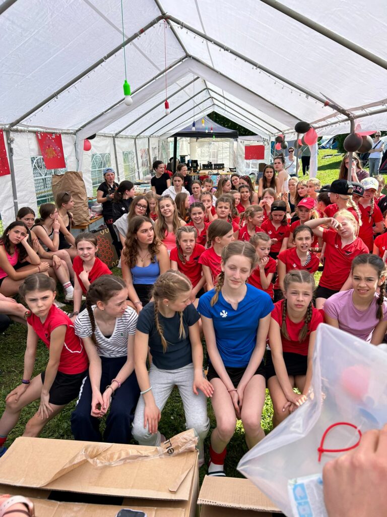 Die Zelte und Verpflegungsstation waren bereits von einigen Vätern einen Tag vorher aufgebaut worden, als die 78 Mädels nach einer ausgelassenen Busfahrt im Salinental ankamen. So konnten einige Mannschaften direkt mit den ersten Spielen beginnen, während die restlichen Mädchen den Zeltplatz eroberten.