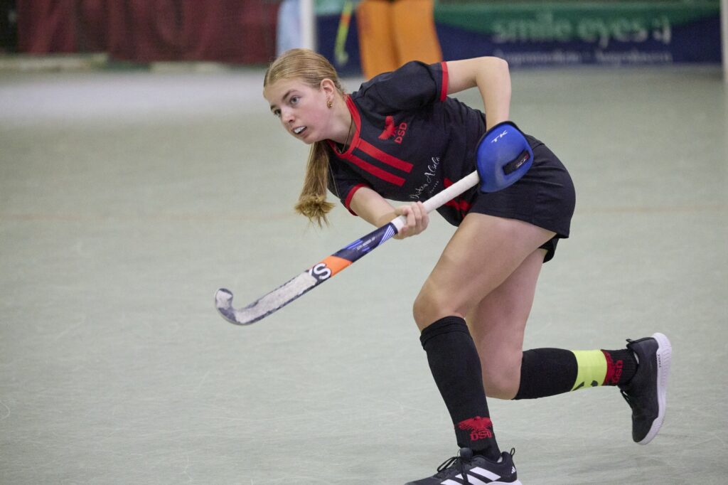Damit qualifizierten unsere Mädchen für das Halbfinale am Sonntag – und das gegen den amtierenden deutschen Feldmeister Uhlenhorst Mülheim. In einer spannenden Partie zeigte die Mannschaft großen Kampfgeist, diszipliniertes Abwehrverhalten und feine Kombinationen im Angriff. Der Lohn, ein 1:0-Sieg und der verdiente Einzug ins Finale! Dort traf der DSD dann das Team des SC Frankfurt 1880, musste sich nach großem Einsatz jedoch mit 1:3 geschlagen geben. Trotz der Niederlage war es ein großartiger Erfolg in einem hochklassig besetzten Turnier – und ein hervorragender Start in die neue Hallensaison.
