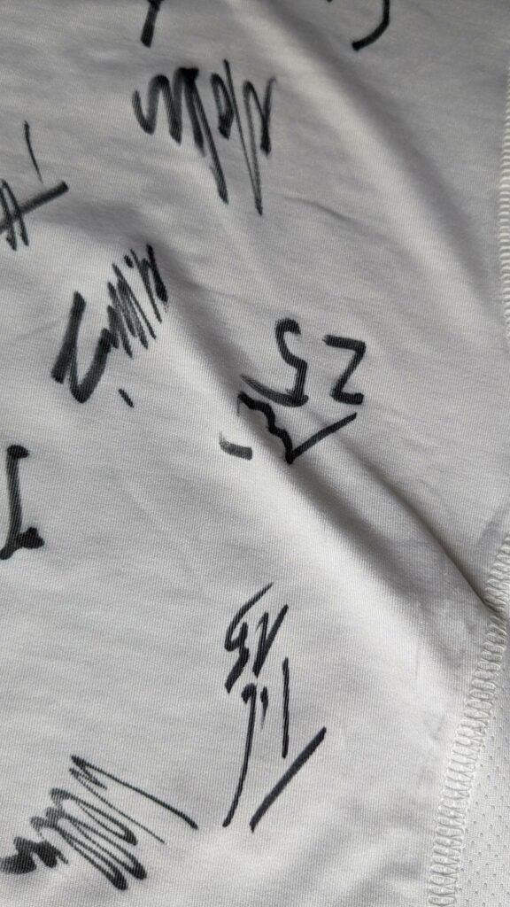 Bewaffnet mit Edding und Trikot ( wegen der Kurzfristigkeit aus Beständen), und wir haben sie alle: Wellen, Peillat, Stadler, Oruz und Co.