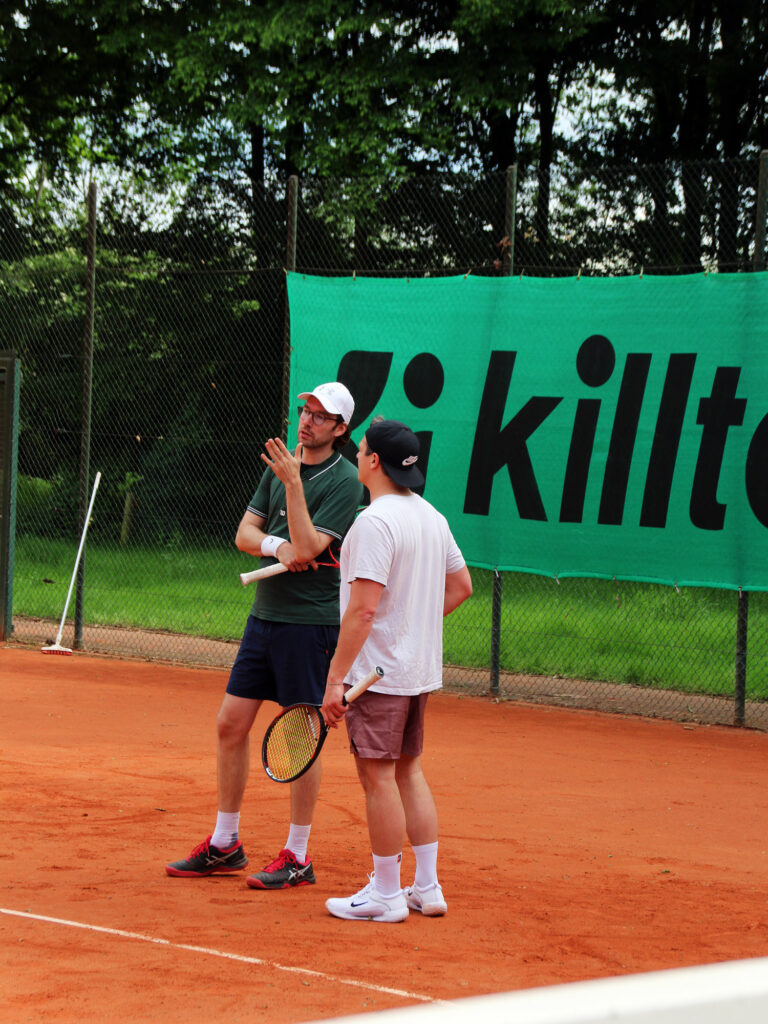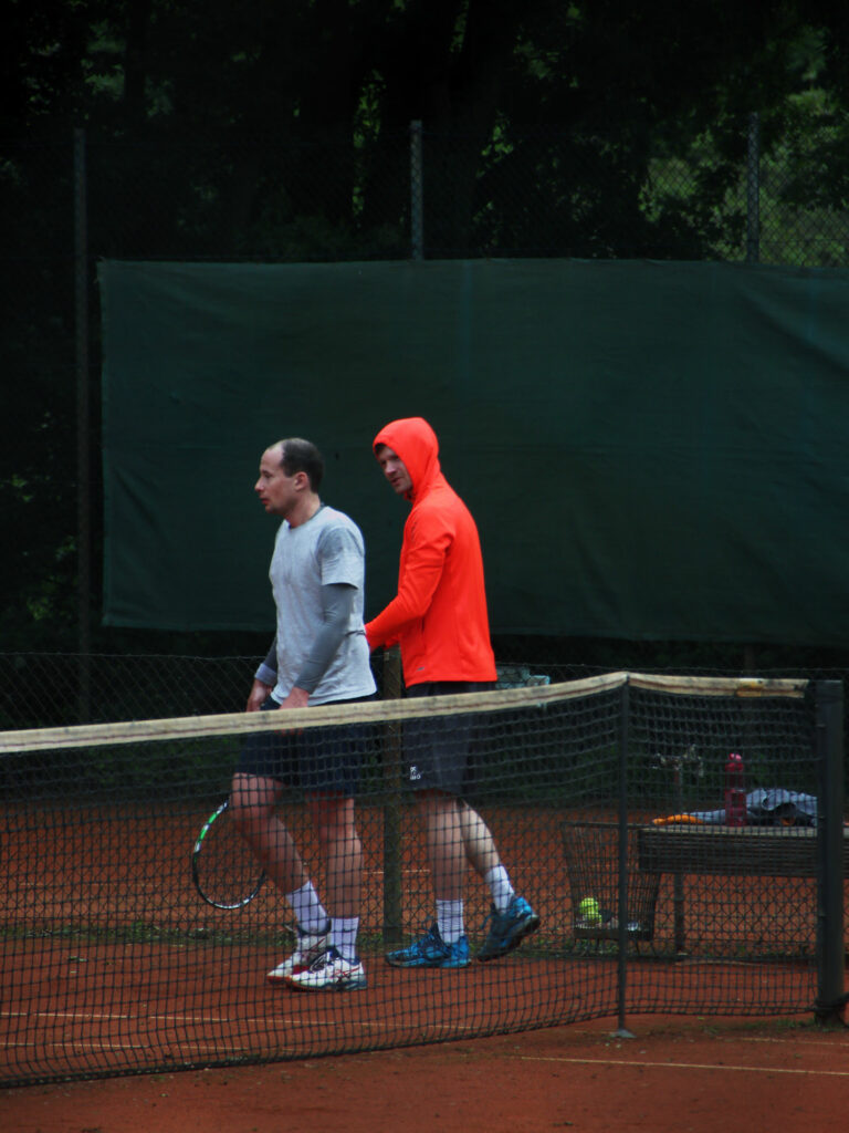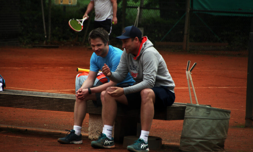 Großer Wermutstropfen war allerdings der verletzungsbedingte Ausfall von Tobi, der beim Stand von 9:7 (und Matchball!) im Champions-Tie Break am Spielfeldrand böse umknickte und trotz aller Versuche nicht mehr wirklich spielfähig war. Am Ende musste er seinem Gegner gratulieren und mit geschwollenem Knöchel den Rest der Begegnung von der Terrasse beobachten. Wir hoffen auf schnelle Genesung und drücken die Dauen, dass die Saison nicht gänzlich gelaufen ist.